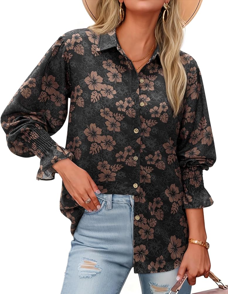 Occasion:Floral Patterned smocked sleeve dressy casual shirt is great choice for daily look or commuting attire, party,country concert,vacation, travel, school, company,office,holiday, beach, shopping,street or dating. It is popular with modern women of all ages for daily fashion look and suit for daily wear, date, vacation, party, casual, office work.
