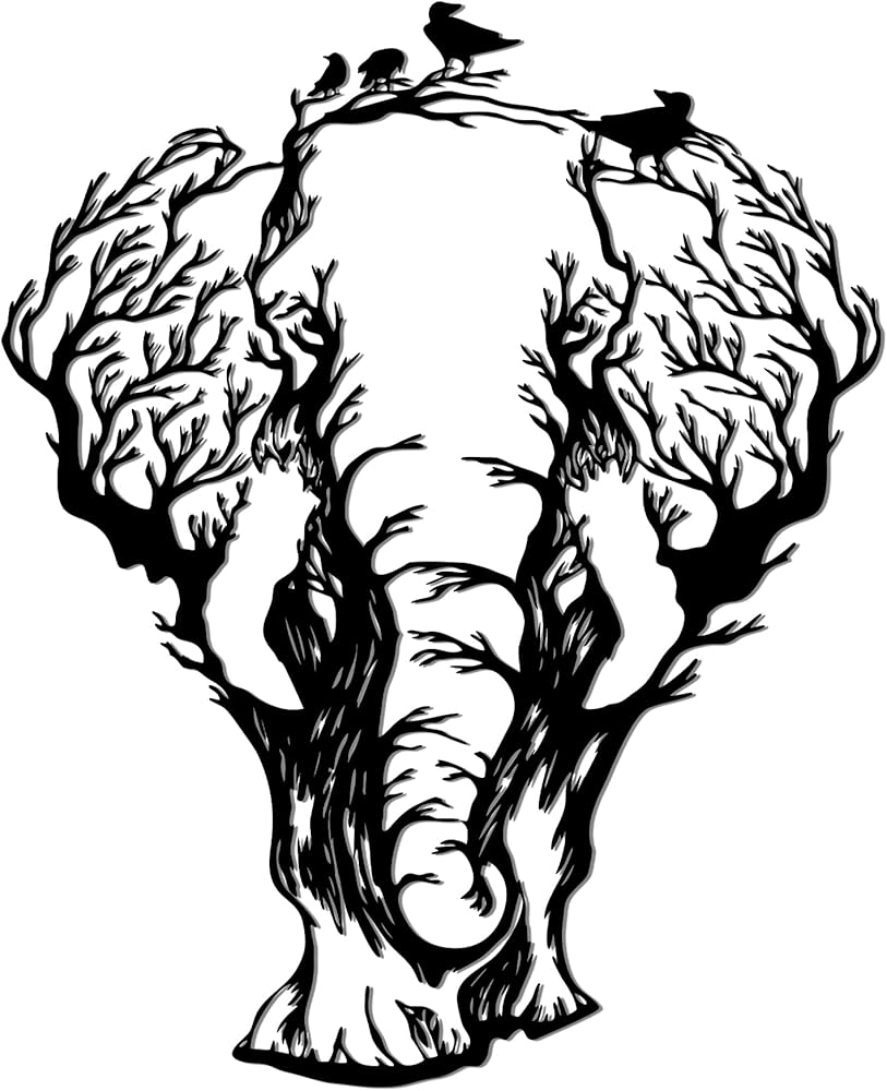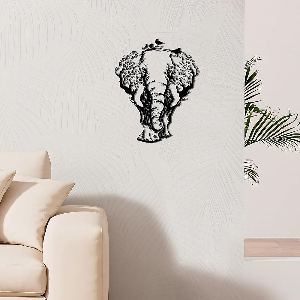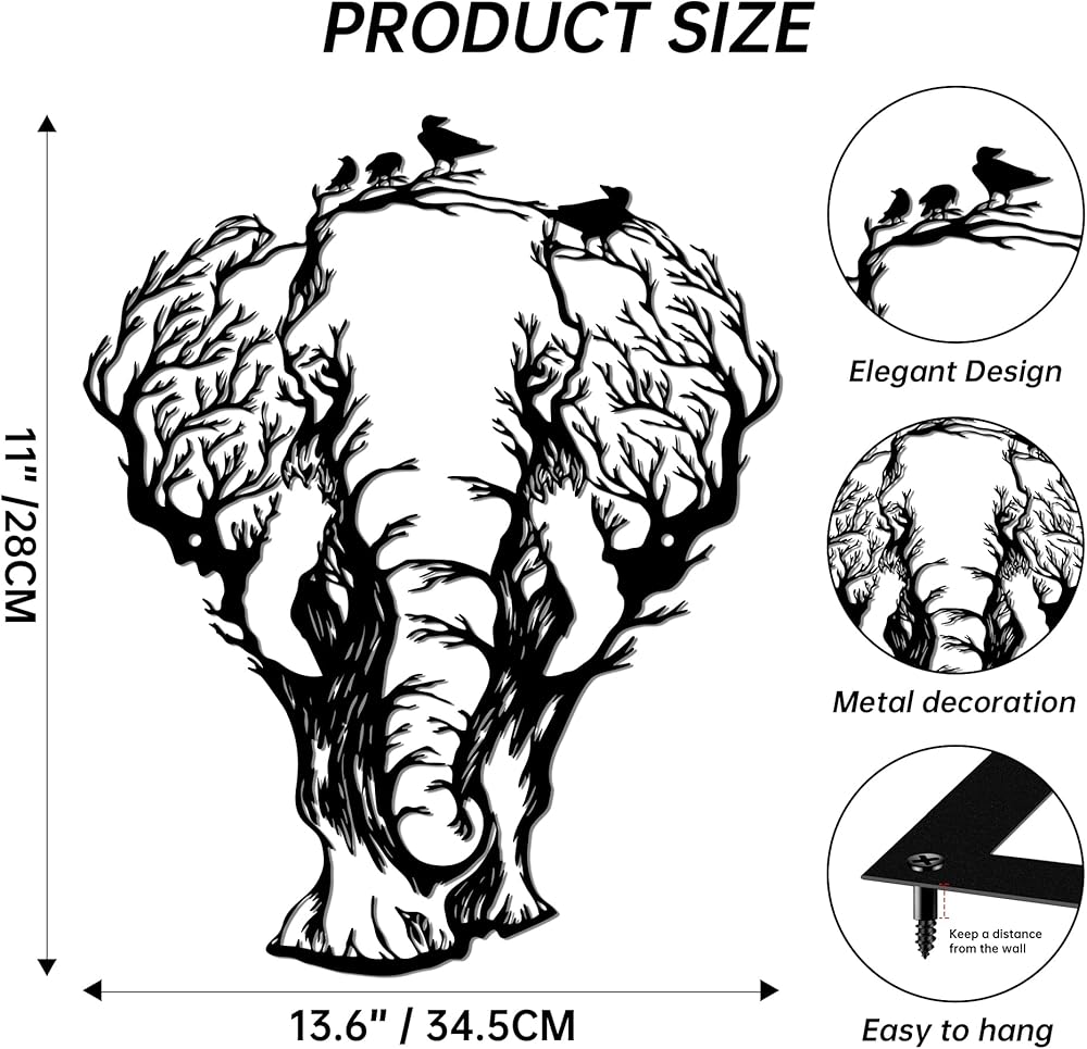 Transform your space with our captivating Elephant Wall Art, where African wilderness meets artistic elegance. This stunning metal sculpture (13.6x11 Inches) features a magnificent elephant silhouette creatively formed from intricate tree branches with delicate bird silhouettes, bringing the magic of the African savanna directly to your walls. Crafted for lovers of african decor and nature-inspired animal head wall decor, this piece adds a touch of wild sophistication to any room setting.