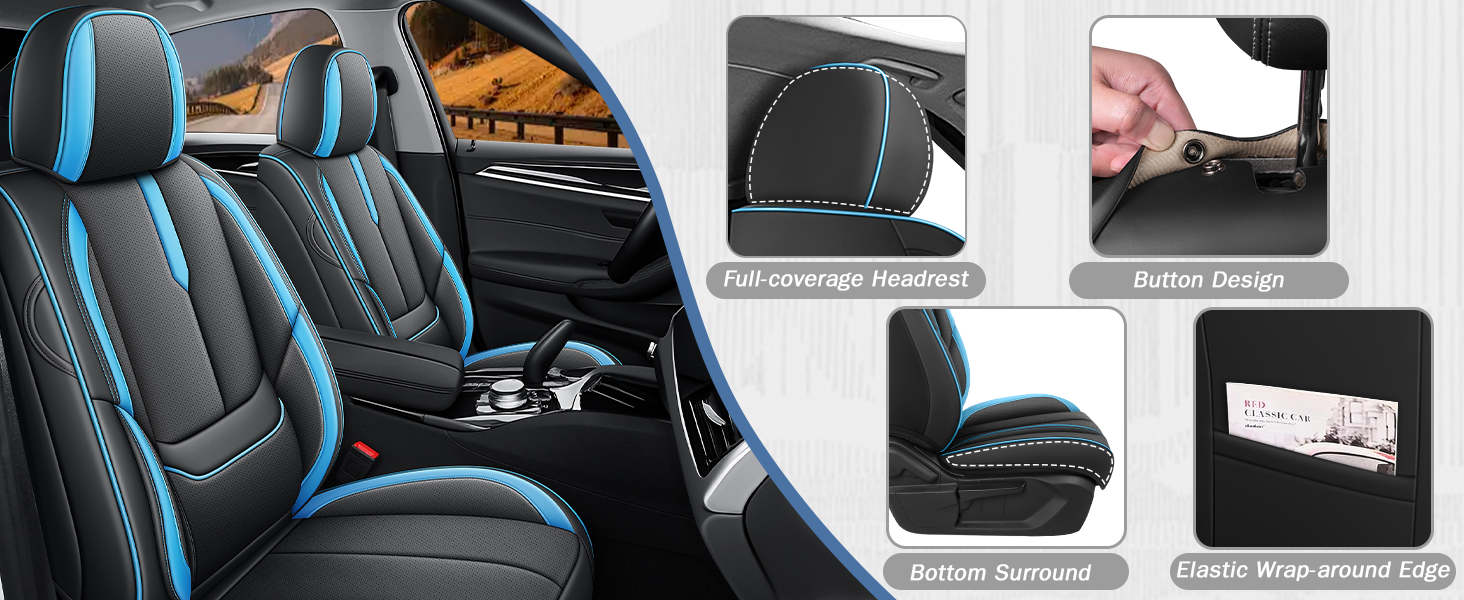 DURABLE PROTECTION:Crafted from high-quality faux leather, this car seat cover set shields against spills, scratches, pet hair, dirt, and daily wear. The waterproof surface and anti-slip backing help maintain your vehicle's interior in great shape with easy care. Perfect for work trucks, family rides, or daily commutes.
