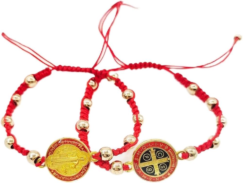 2 Pack St Benedict Bracelet Red String for Protection - Adjustable San Benito Medal Rosary Bracelets for Men Women - Catholic Religious Knot Prayer Beads Gift for Confirmation Faith & Good Luck Charm