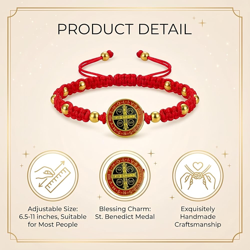 🛡️ Ultimate Spiritual Protection: Embrace the dual defense of the vibrant Red Cord and the sacred St. Benedict Medal; Historically revered as the "Devil-Chasing Medal," this sacramental symbol bears the Vade Retro Satana initials to ward off spiritual negativity, offering you a tangible daily shield of divine safety and peace of mind against life's anxieties.