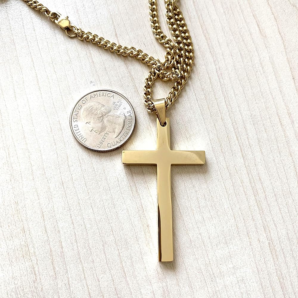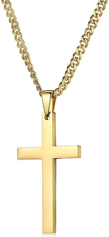 RIVETING JEWELRY- Flat Face Cross Necklaces - This Minimalist style Flat cross chain is trending jewelry nowadays. It is similar to other types of men gold chains necklace, with an interlocking pattern that make the chain thicker and attractive. jewelry is classic gift to given for many events, such as marriage anniversary, birthday, or the valentine day. - HOW OUR JEWELRY IS MADE - Our jewelry is made by our highly skilled artisans thus; - Resistant to tarnishing, -The look and feel of solid gold. - Cross pendant is crafted in 14K gold with solid clasp. Figaro Chain is also made to last 14K gold 4mm wide chain.compare size to quarter in pictures above for true size. Comes in gift box. - Attention To Detail; - The diamond cut "twist" of this Classic Cross Chain design exposes many sides of the necklace to make it glisten in light. - Designed for Men, Women, , . It may be worn with a pendant or worn alone. - Exclusive Gold Chain Necklace made in USA from real 14k Karat gold and laid over a heart of semi-precious metals. . - against any and all defects. Buy once and have it all your life! - What makes it better? - Over 18mls of 14K gold in each chain - 10 times more gold than in the cheaper electroplate which changes color quickly. No cheap base metals like steel, (turns green) or nickel (toxic). Our trade secret is in the special SEMI-PRECIOUS alloy of the best bonding metals we use to ensure the look of solid gold and its long life. - Our chain is covered with a special protection coating to guard against tarnishing. - The clasp is very sturdy - FAR SUPERIOR in strength and style, also prettier and easier to use. Ends of each chain are soldered for extra strength. Perfect for pendants or for wearing alone.- Exclusive discount offers