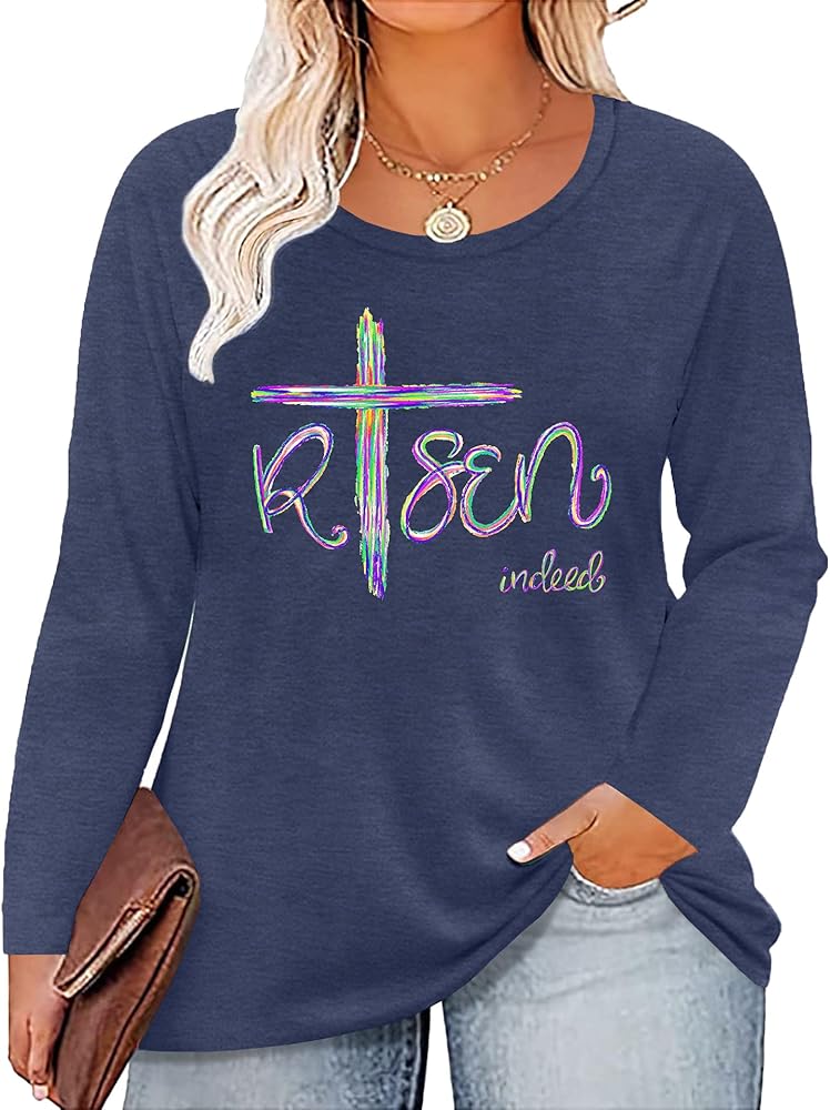 Style: This plus-size long-sleeved women's Easter T-shirt easily pairs with your favorite jeans or other outfits. Whether it's a church service, a family Easter brunch, a casual outing, or a holiday party, it creates a relaxed and stylish spring look.
