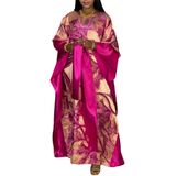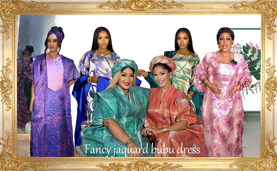 HD Fashion African Jacquard Kaftan Dress for Woman Fancy Party Gown with Headwrap