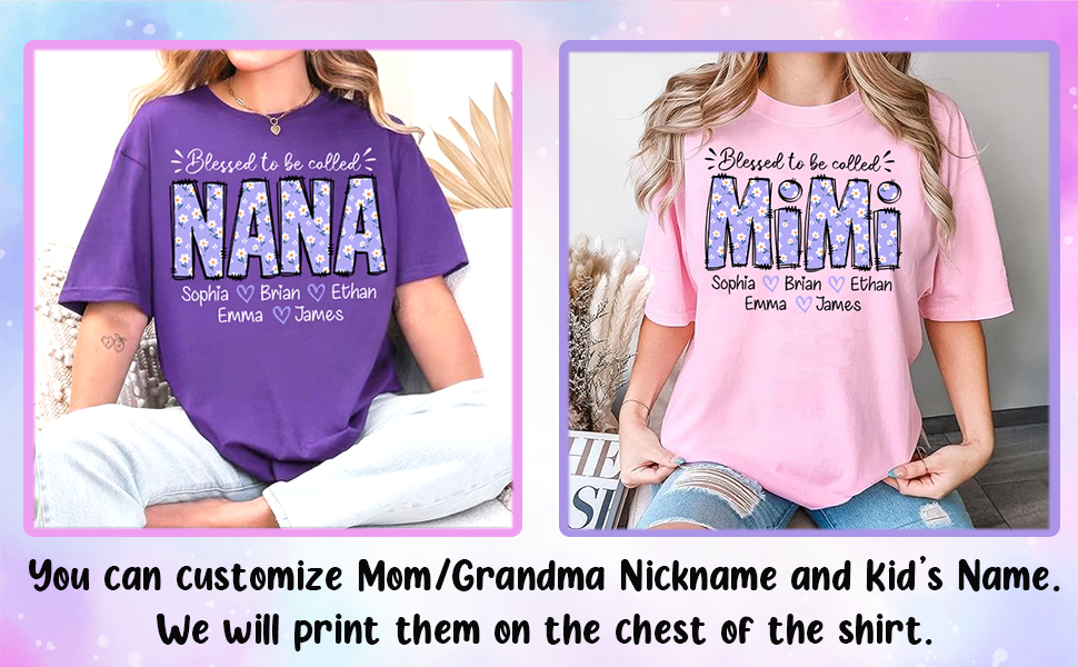 INTRODUCTION: Custom Grandma Shirts with Kids Names for Women. Our high-quality Sweatshirts, Hoodies, and T-Shirts for Grandma, Mimi, Gigi, Nana, Mama, Mom are designed to provide both comfort and style for everyone. Made from soft polycotton, these Shirts are perfect for any occasion—whether you're lounging at home, going out, wearing them to work, or dressing up for special occasions.