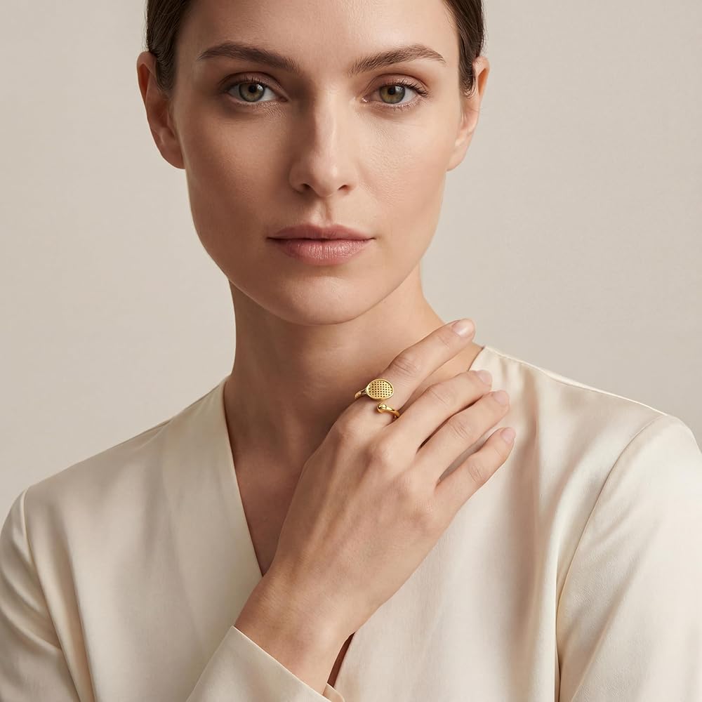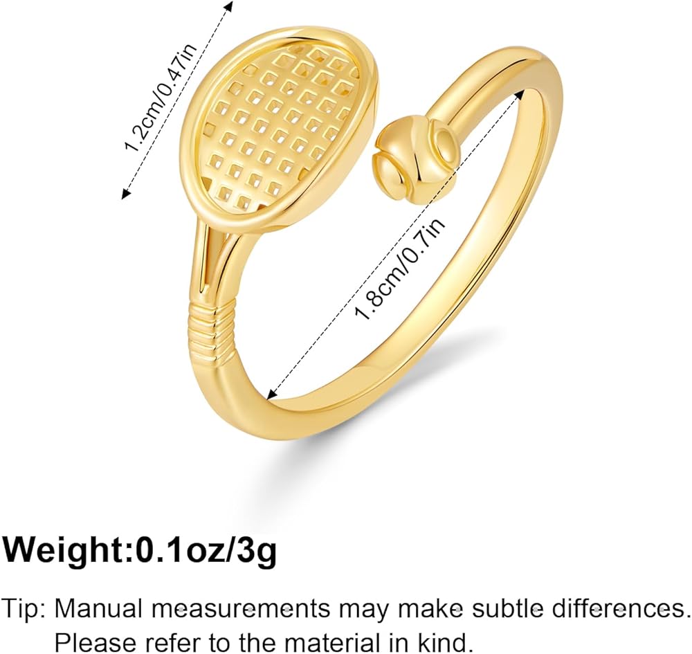 18K gold Plated: Crafted with glossy gold plating, the ring boasts a rich, long-lasting luster; the clear details (racket grid, handle stripes) highlight delicate craftsmanship, balancing fashion sense and premium texture.