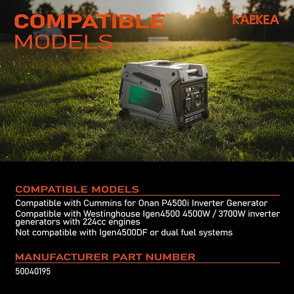 Fitment: Carb kit compatible with Cummins; Onan P4500i Inverter Generator; Westinghouse Igen4500 4500W / 3700W inverter generators with 224cc engines. Not compatible with Igen4500DF or dual fuel systems