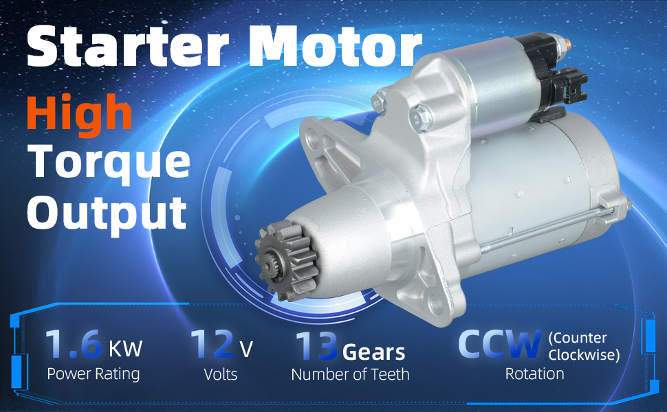 Specifications: Power Rating: 1.6KW; Volts: 12V; Number of Teeth: 13; Rotation: CCW (Counter Clockwise)