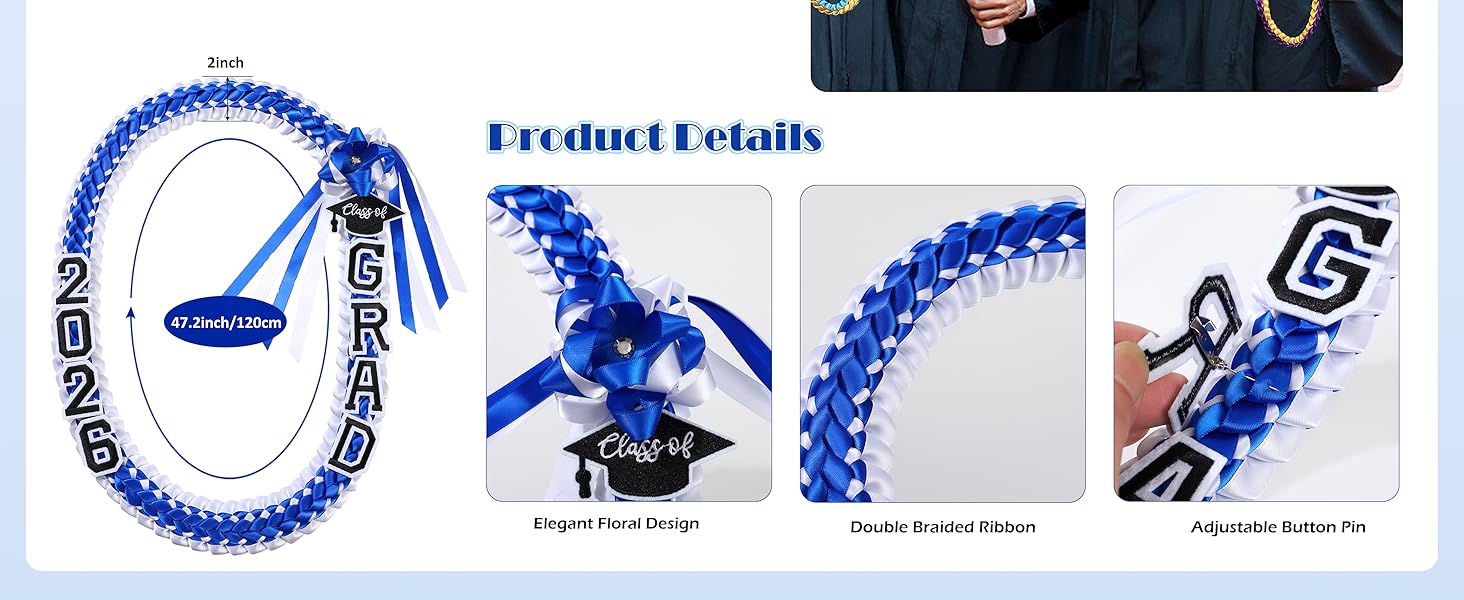 Braided Leis:Woven with 4 ribbons and ending with a delicate bow, the class of 2026 and congrat grad memento can be a great way to decorate your graduation.
