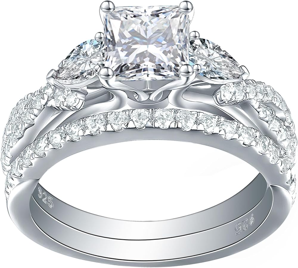 ♥Material♥ Newshe wedding rings are 100% Solid Sterling Silver/ 925 stamp, nickel-free, lead-free, hypoallergenic. The sterling silver rings won't turn your finger green.