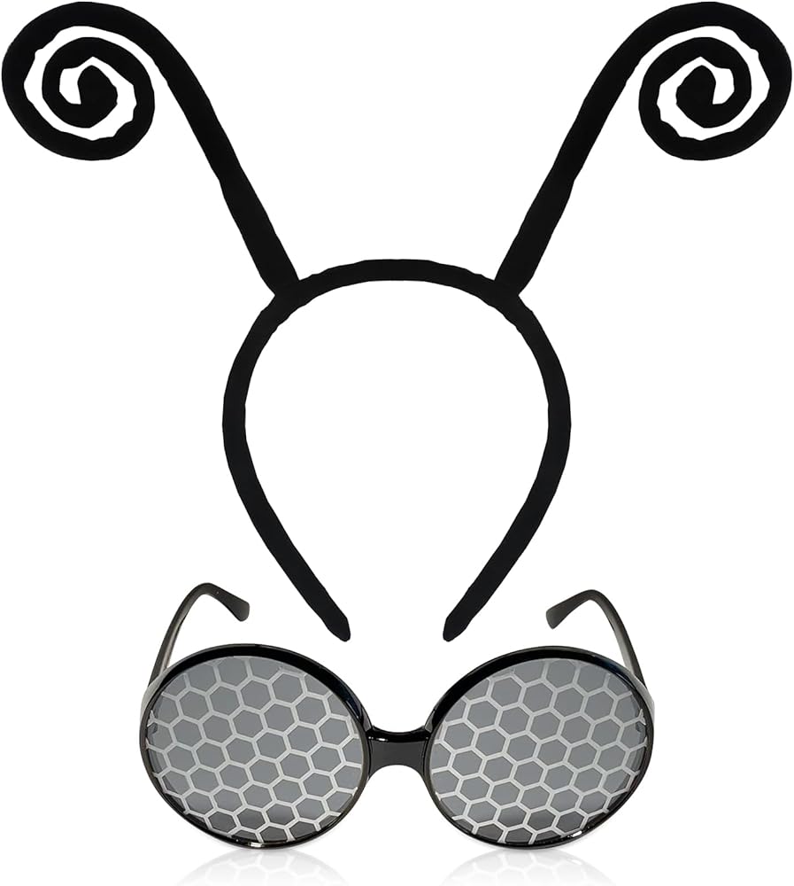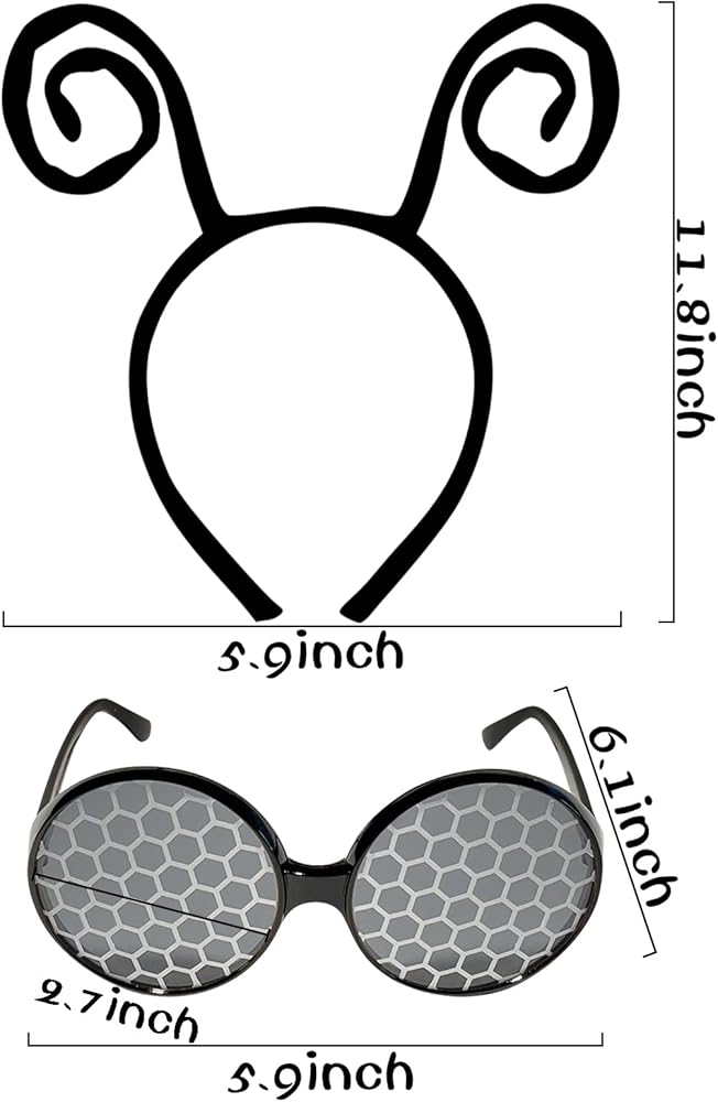 [Theme Party Accessories]: The butterfly antenna headband is flexible and fits well. The cute antenna connected by springs is swaying in the air, adorable and charming. The unique glasses feature a very cool black frame and honeycomb lenses. Sturdy, lightweight and comfortable to wear, it brings a cheerful atmosphere to festivals.