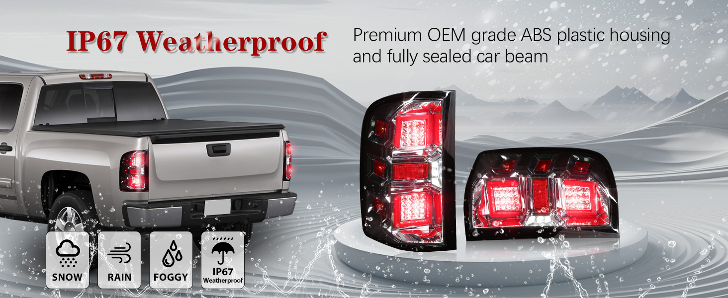 💖IP67 Weatherproof: To achieve IP67 weatherproof rating, we use premium OEM grade ABS plastic housing and fully sealed car beam to ensure durability in heavy rain or inclement weather. Good heat dissipation prevents lens fogging and ensure excellent performance of tail lights during the whole days