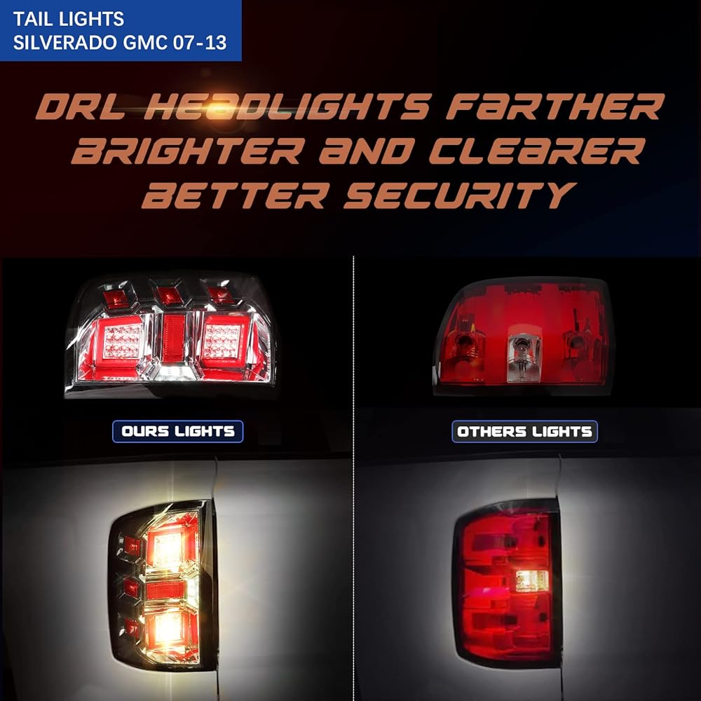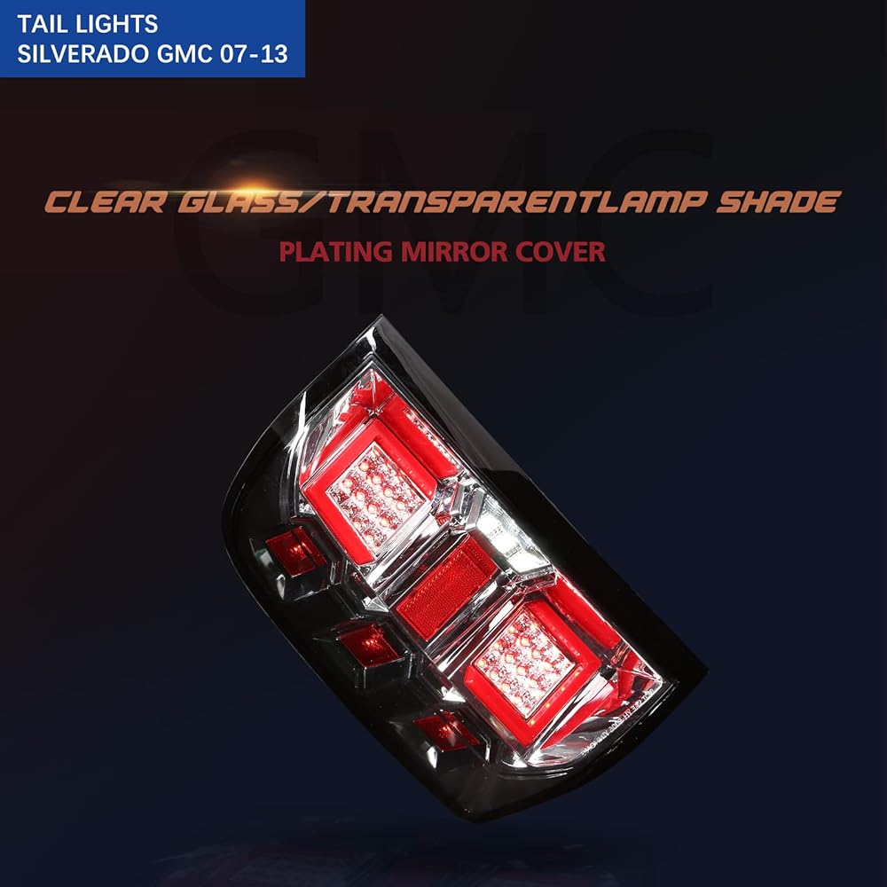 PZ LED Tail Lights Assembly Compatible for 2007-2013 Silverado 1500 2500HD 07-14 GMC Sierra Left and Right Sides Clear Lens Electroplating Cover Projector
