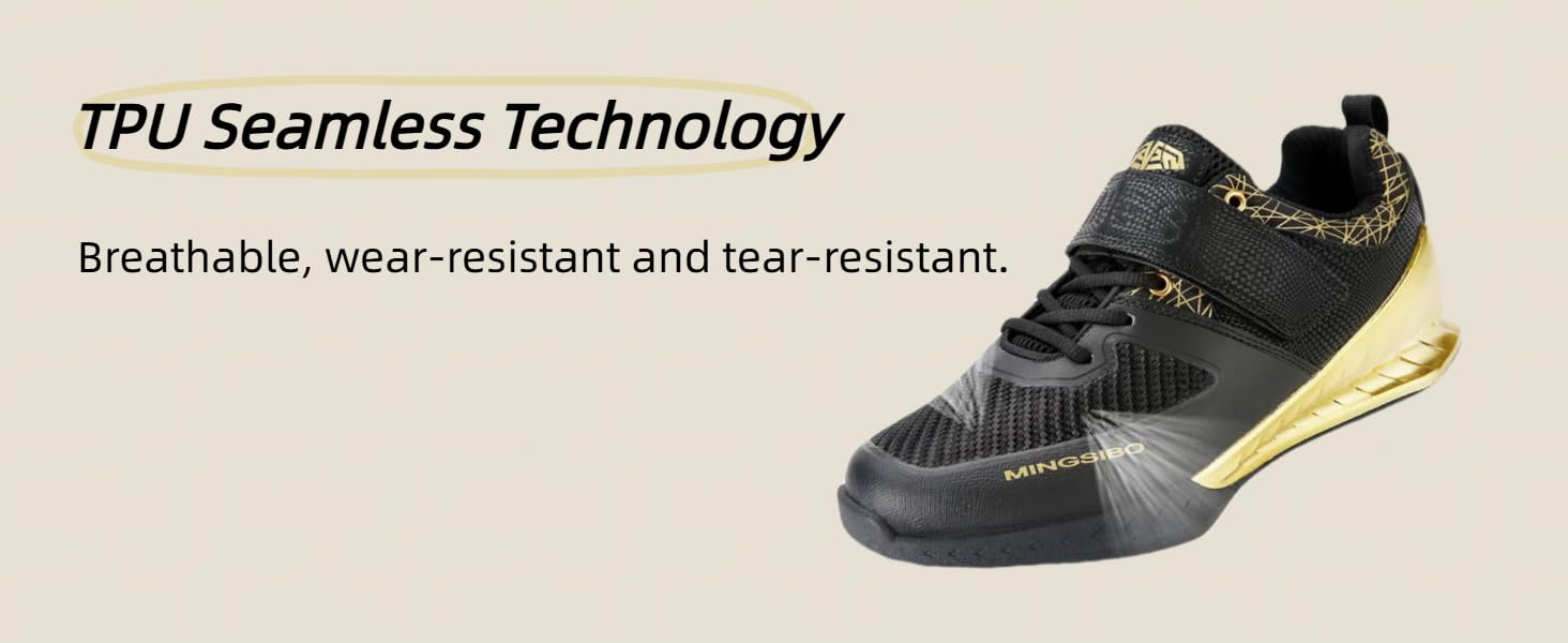 【Stable Base with Enhanced Support】: The widened, elevated, and reinforced heel enhances stability for exercises like squats, deadlifts, and snatches. Supports better balance between your heel and the ground, improving overall performance.