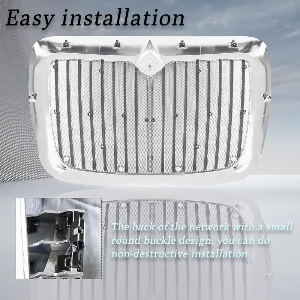 • High-Quality:International prostar grille made of durable materials,with net.Enhance the car's appearance,premium chrome finish that guarantees durability and long-lasting aesthetics.
