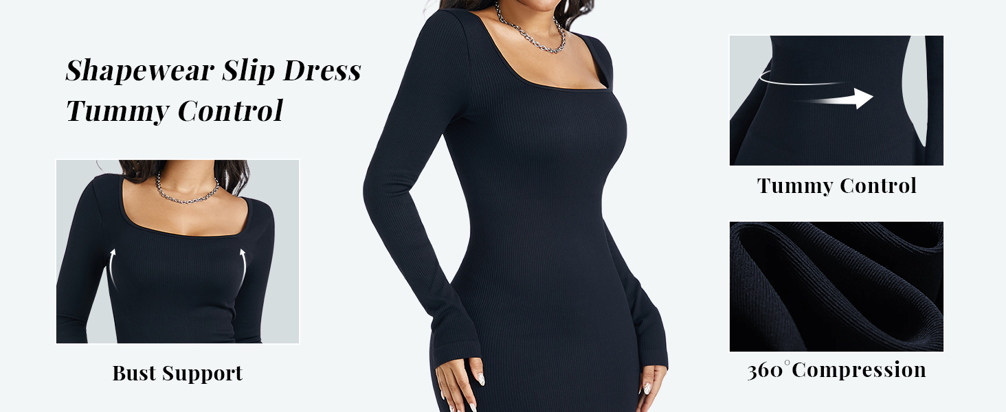 Night Out Dress: Body Shape Dress smooth your your stomach, reduce waistline, hide your bulges or lumps to trim more charming body silhouette. You can wear the shapewear dress as a shaping undergarment or an outer garment.
