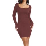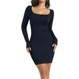 Material:90% polyamide 10%elastane,This square neck bodycon dress features with sleek form-fitting, stretch fabric sucks you in and hugs you in all the right places, casual dress for spring, fall, winter.