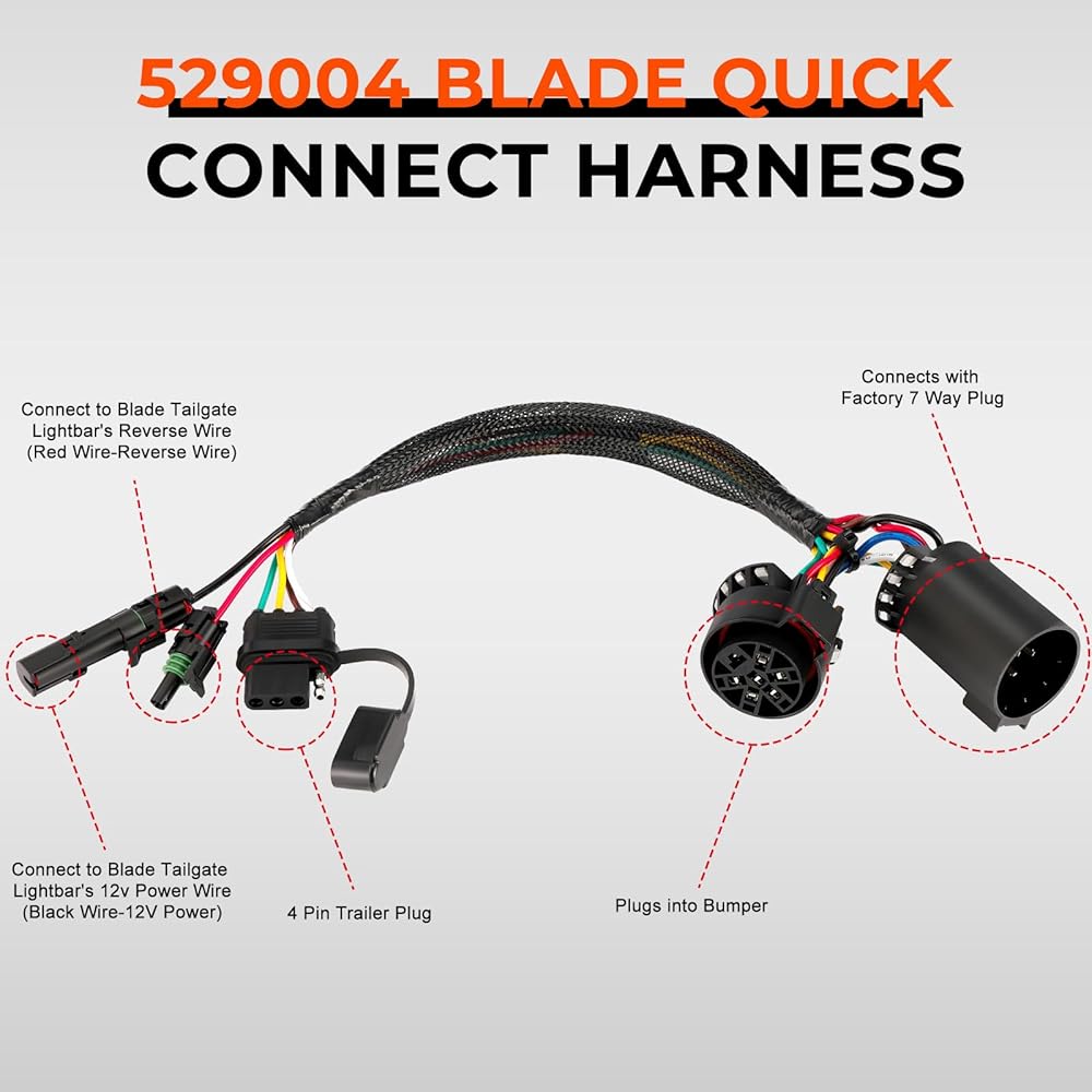 529004 Quick Blade Connect Harness Adapter for Car Trucks Tailgate Light Bar LED Redline Amber Turn Signal Reverse Full Function, USCAR 7 Pin to 4 Pin Trailer Connector w/Reverse & 12V Wire