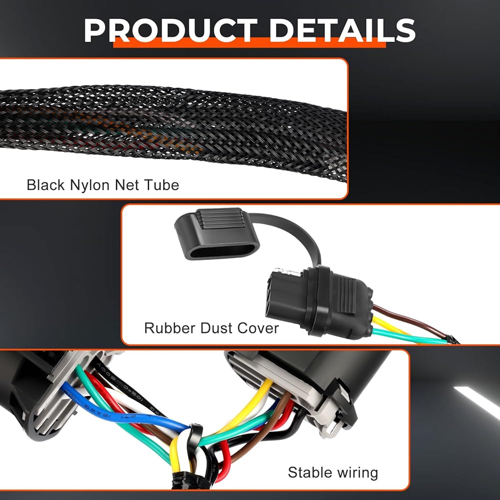 【Durable Material】ISINFLASH Trailer harness is protected and restrained by black nylon net tube, with 18-gauge heavy-duty wire and high-quality copper terminal, and waterproof rubber cover tightly fitted, which is used for 4-pole flat trailer connector. Truck with trailer control module and tow package cannot recognize LED light bar, Tailgate Light Bar Adapter enable the vehicle to recognize LED trailer lights.