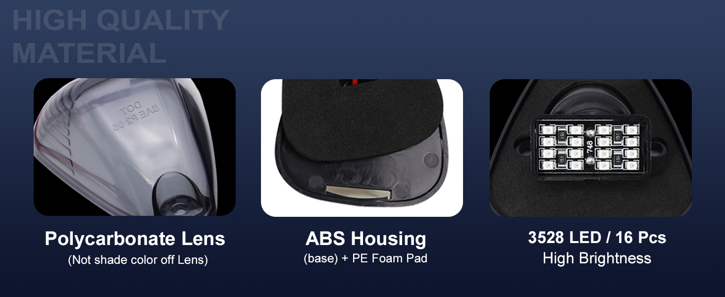 High-Brightness Amber LED Lights: Each light features bright amber LEDs to enhance visibility and safety on the road, both day and night.