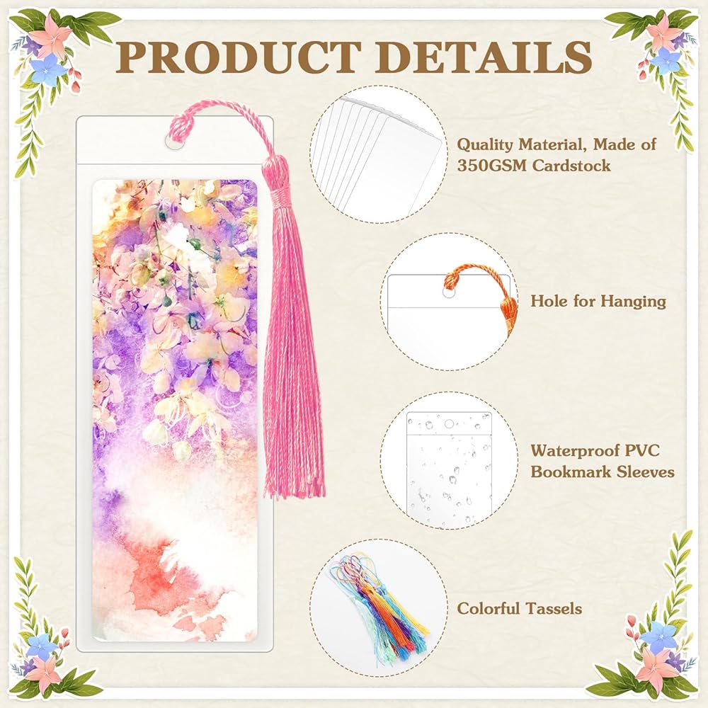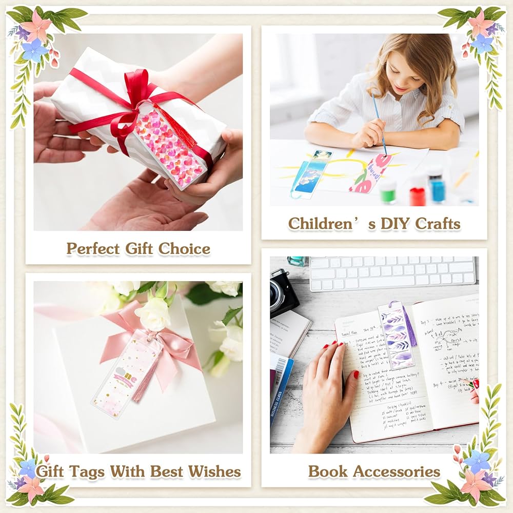 Package Includes: 100pcs paper blank bookmarks, 100pcs tassels(20 colors, 5pcs of each color), 100pcs clear bookmark sleeves. Blank bookmarks can be freely designed according to your preferences, give full play to your creativity. Sufficient quantity to meet your various needs
