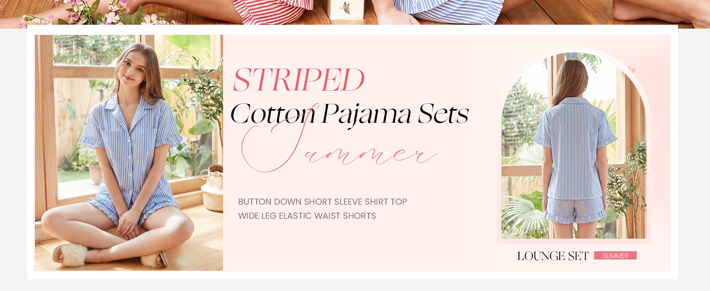 Match: This striped womens pajama set can easily pair with sandals to create a fashionable and casual look when outing.