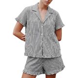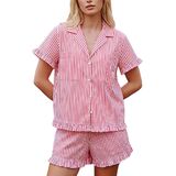 Occasions: Cute striped pajama set, suitable for sleepwear, loungewear, bridal pajama set, classic and chic summer lounge set.