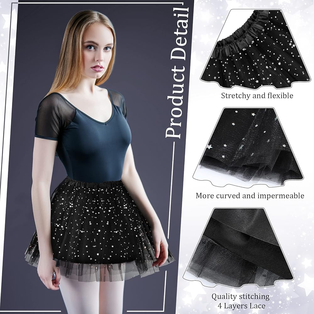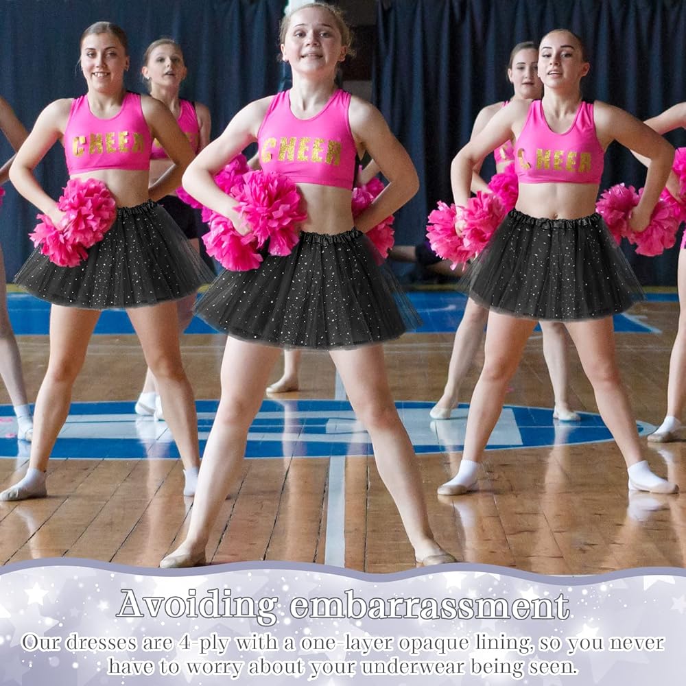 4 Layers Design: the glittering skirt is mainly made of tulle, three layers of tulle make the skirt looks fluffy and cute, and there is one layer of lining inside to prevent nakedness, you can walk or dance flexibly, the skirt will look sporty and elegant to wear