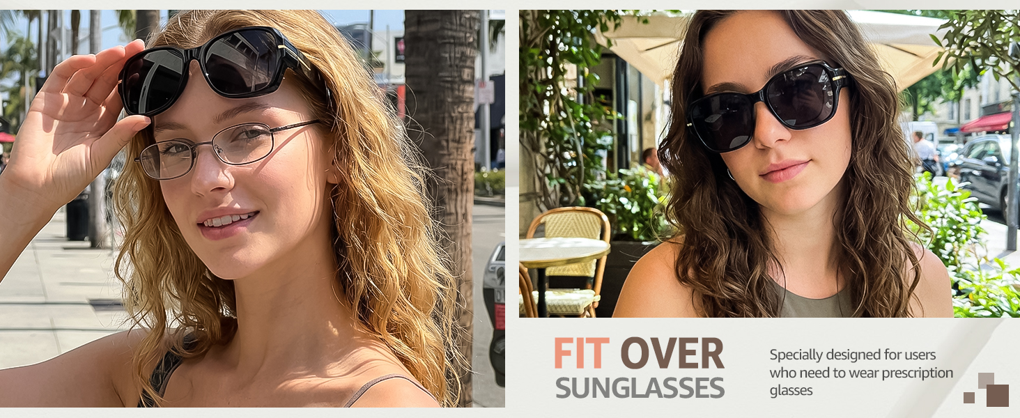 FIT OVER GLASSES SUNGLASSES: These oversized fit-over sunglasses slide easily over most prescription frames. No need to change lenses—just slip on these fit-over sunglasses for quick shade, instant comfort, and everyday outdoor protection