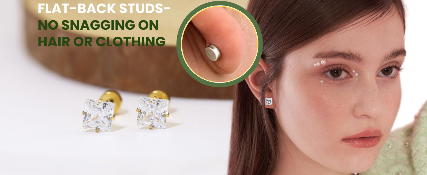 Hypoallergenic Titanium for Sensitive Skin: Crafted with medical-grade titanium, these earrings are nickel-free and ideal for sensitive ears. The flat-back stud design prevents irritation, ensuring comfortable long-term wear for helix, tragus, or cartilage piercings.