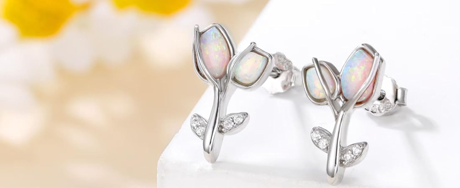 Opal Earrings: These earrings feature opal gemstone tips, displaying a dreamy iridescent color. Each stone has a unique play-of-color effect, rich in color gradations, and exudes a fashionable style.