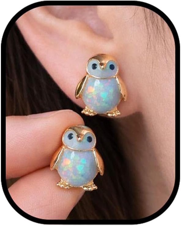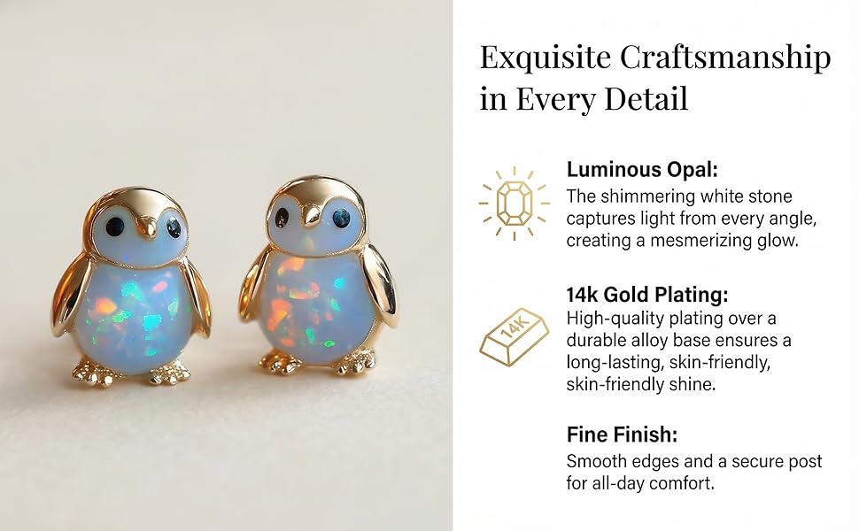 Opal Earrings: Made from durable alloy and beautifully plated with 14k gold, our penguin earrings provide both elegance and longevity, ensuring they remain a staple in your accessory lineup.