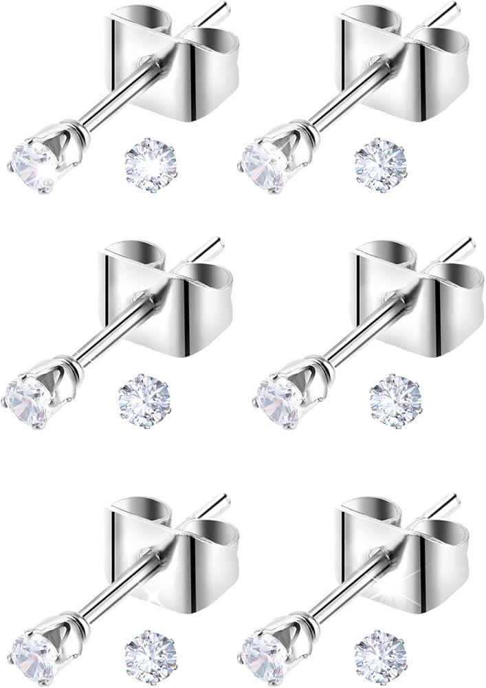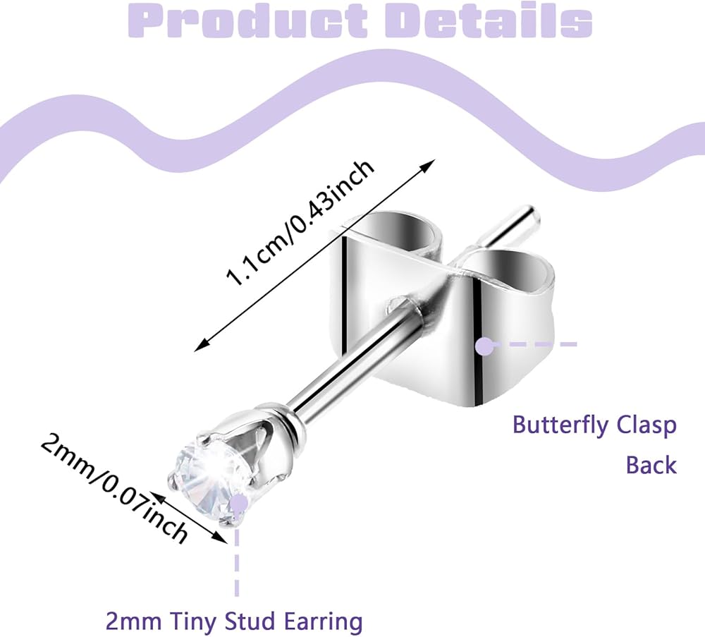 Package contents: The earrings studs set includes 6 pairs of delicate silver zircon stud earrings, suitable for both men and women. Each pair features a 2mm diameter zircon, a moderately sized design that is simple yet eye-catching. Whether for everyday wear or a party, the women's stud earrings will add a touch of sparkle to your overall look