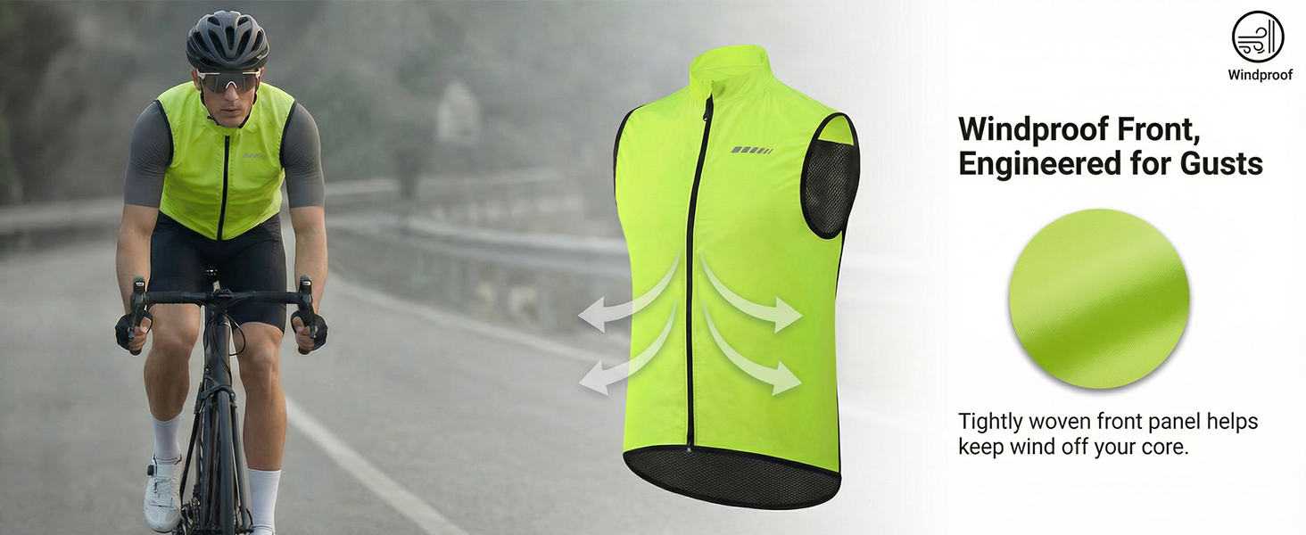 【Windproof Front with Breathable Mesh Back】Tightly woven front helps reduce wind chill on fast descents. Mesh back increases airflow to release excess heat for road rides, commuting, and mixed terrain.