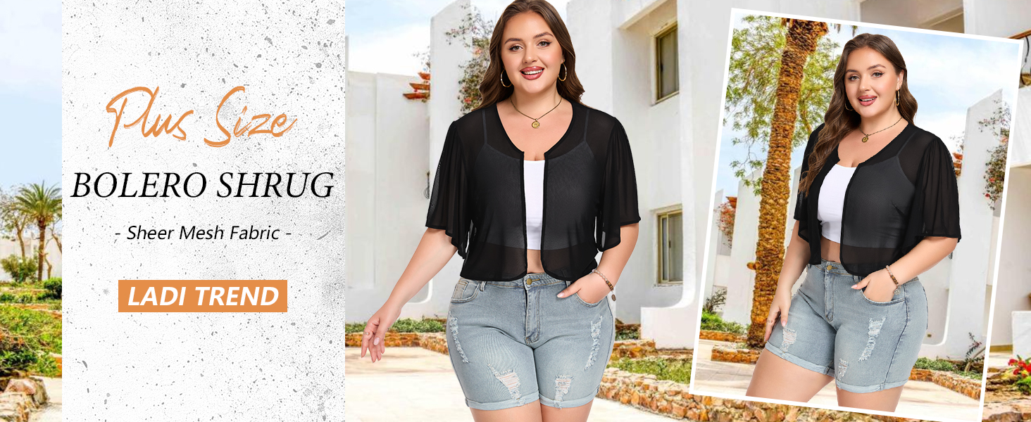 ✿FEATURE: LADI TREND plus size bolero shrugs for women feature ruffled short sleeve, cropped length and collarless. The women's sheer cardigans are ideal for spring, summer and fall.