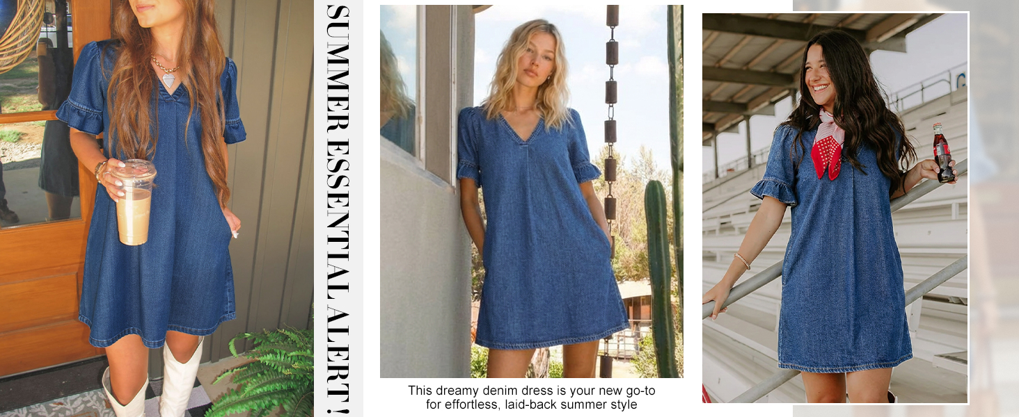 Ruffle Detail of Short Sleeve Denim Dress: Lightweight ruffle sleeves add a soft, feminine touch while subtly covering the upper arms. Thoughtful tailoring allows it to stand out among modern babydoll denim dresses, while preserving the effortless everyday appeal of a classic jean dress for women.