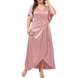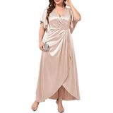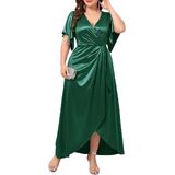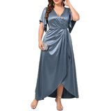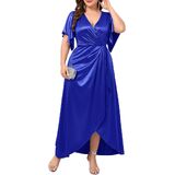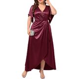 Slimming Design: This plus size evening gown features a V-neck with short handkerchief sleeves and a faux wrap front, effectively elongating the neck and upper body. The high waistline and flowy hem naturally enhance the waistline, creating a slimming effect and flattering various body types for an elegant look.
