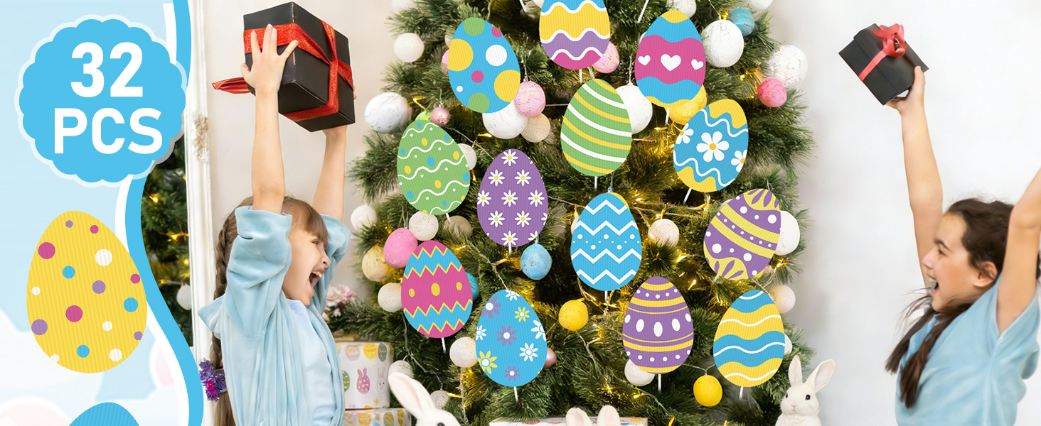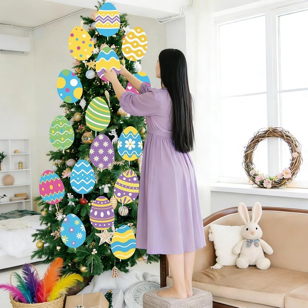 Durable & Reliable: Crafted from thick corrugated plastic, these large easter eggs decoration feature double-sided printing for all-angle viewing. Waterproof, not easily fading, and lightweight yet sturdy, these easter tree ornaments are ideal for indoor or outdoor use throughout the season.