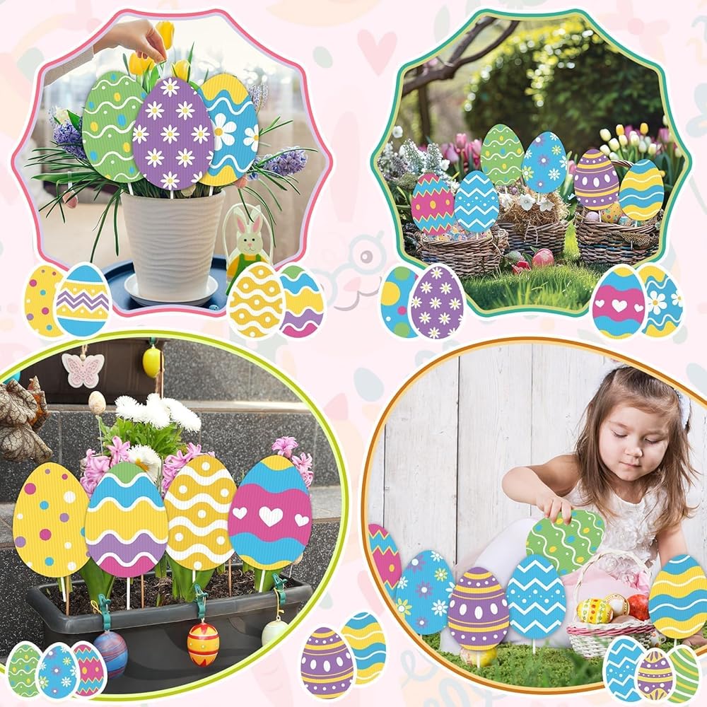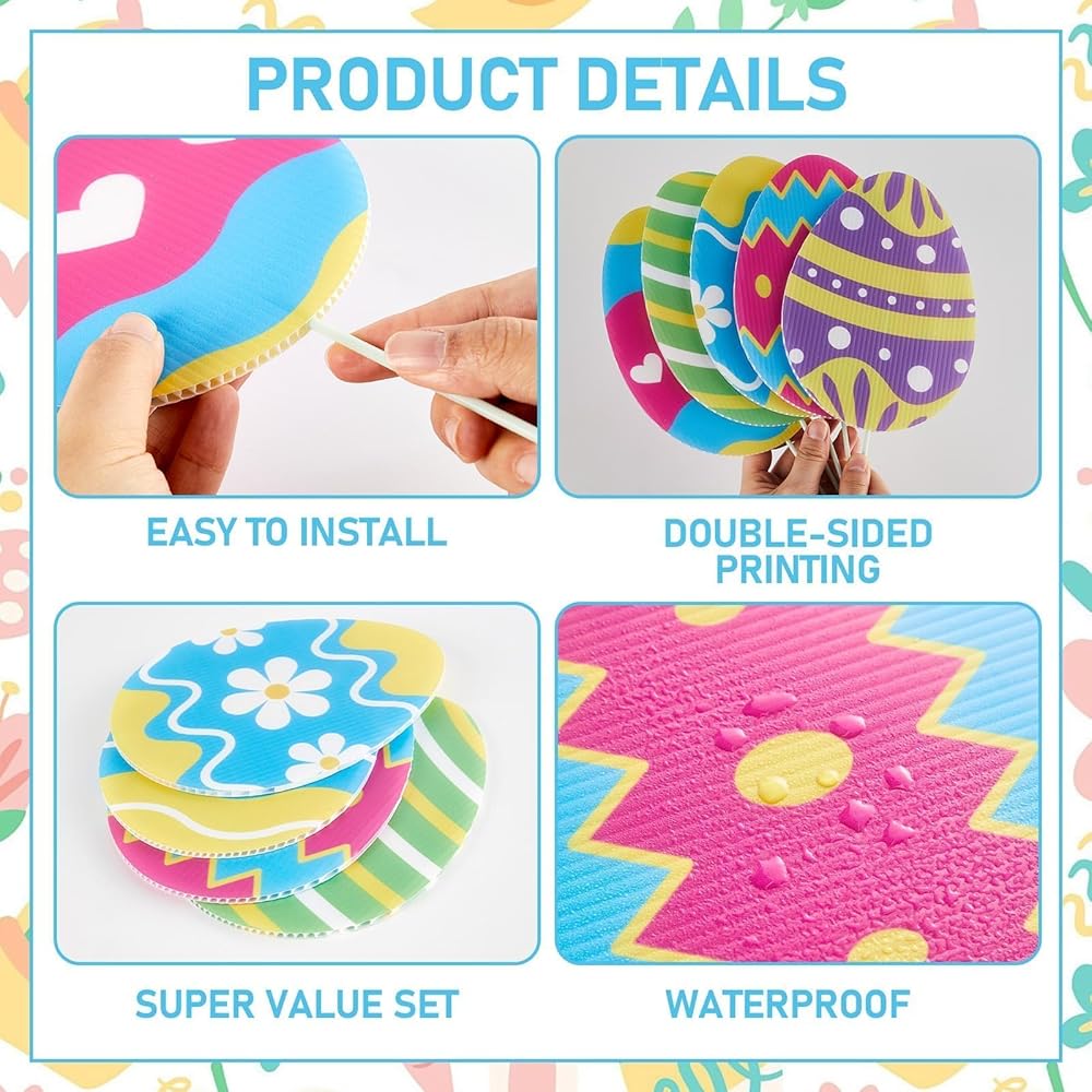 Package Includes: This value-packed set includes 16 large easter decorations featuring egg-shaped signs and 16 sturdy fiberglass sticks. Each egg ornament measures approx. 7.9 x 5.7 inches, making these easter egg picks stand out beautifully on trees, tables, and centerpieces—more pieces than most sets for a fuller, richer display.