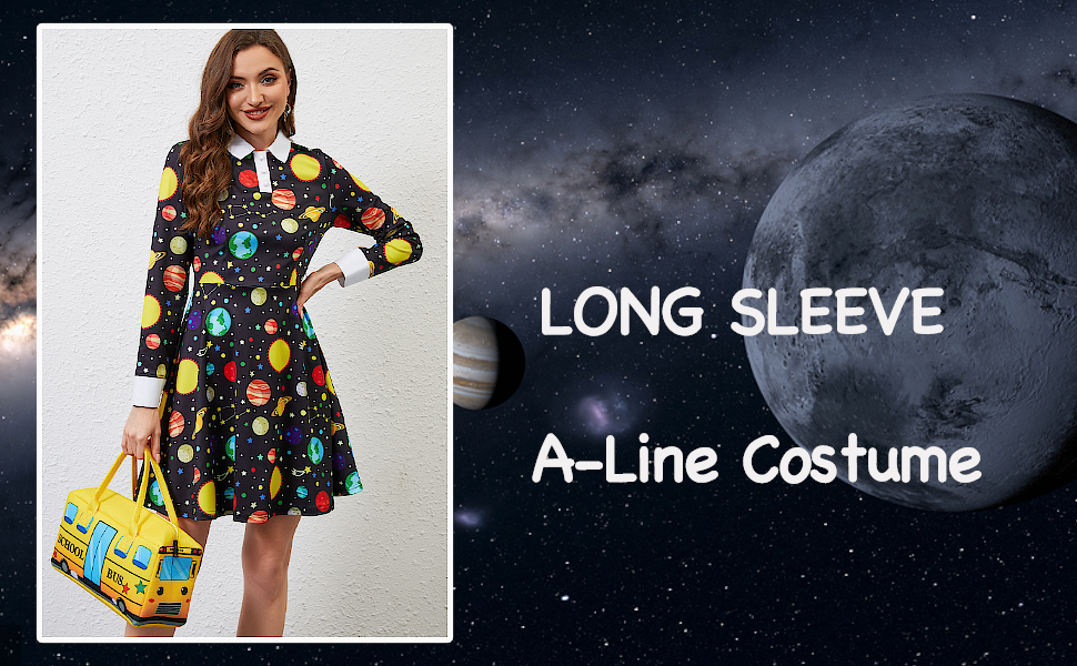 Material:The womens planet space halloween costume dress is made of lightweight and soft fabric,stretchy,great skin-touch,It was not hot or itchy,feels very comfortable to wear in party