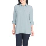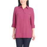 Elevate your wardrobe with this versatile and stylish Hilary Radley women's button-down blouse. The crinkle texture adds a unique dimension to this classic silhouette, making it perfect for both casual and professional settings. The long sleeves feature convenient roll-tab details with button tabs, allowing you to adjust your look and comfort level throughout the day. Two functional chest pockets add both style and practicality to this sophisticated top. The thoughtful design combines timeless appeal with modern functionality, making it an essential piece for any woman's closet. This blouse can be easily paired with your favorite pants or skirt for a polished, put-together look. The adaptable style transitions seamlessly from office hours to evening occasions, offering versatility in your wardrobe choices.