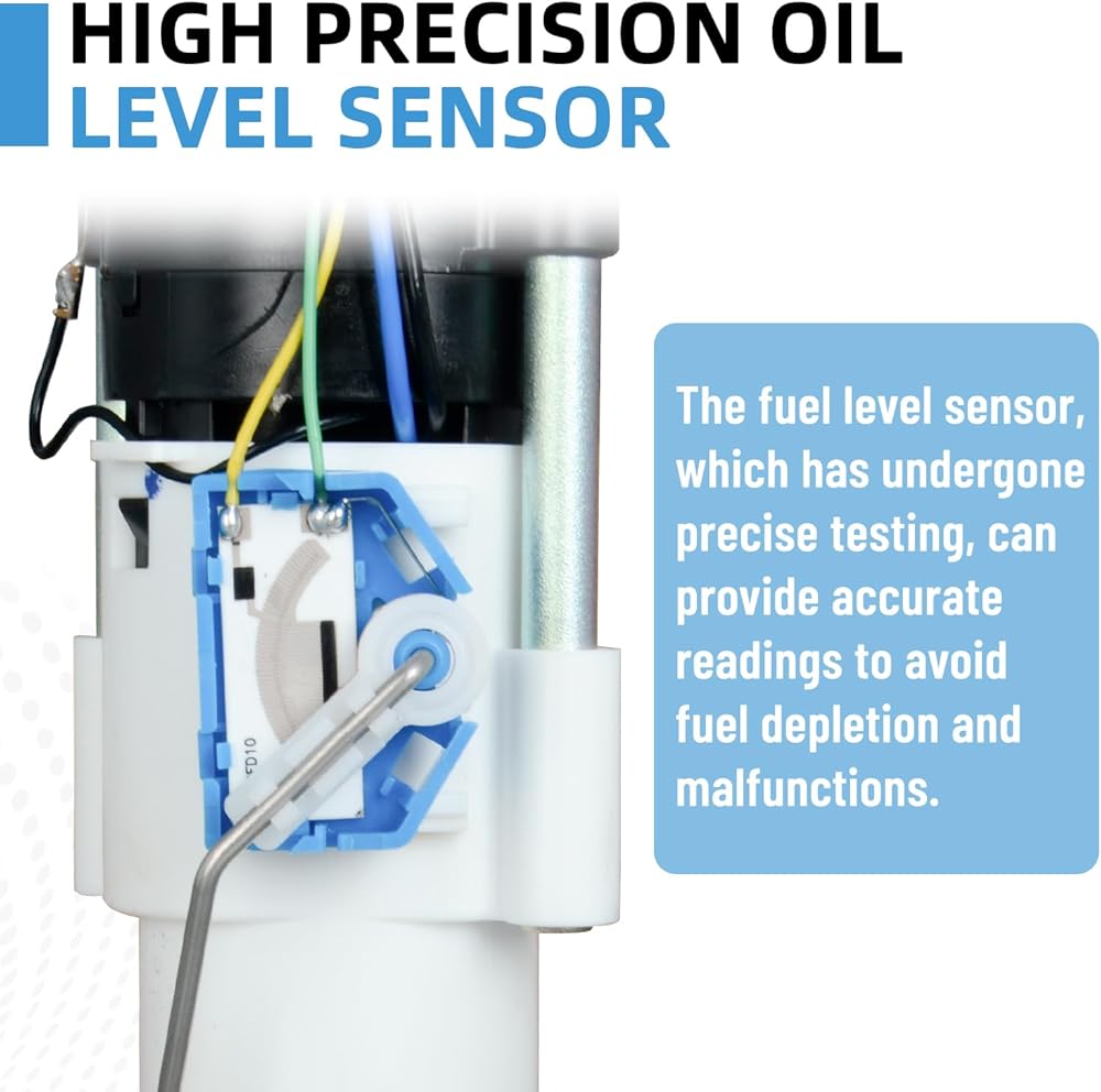 Material: Made of high quality aluminum alloy and plastic, it has the characteristics of corrosion resistance, wear-resistant and good thermal conductivity. The fuel pump assembly is precision manufactured and tested to ensure a long service life.