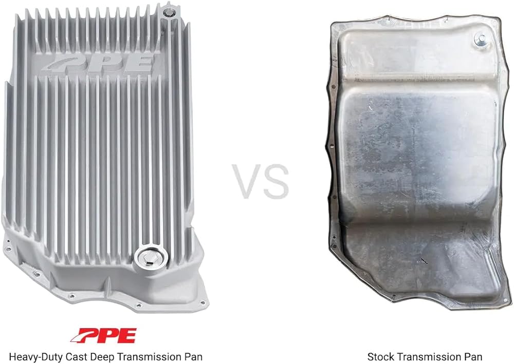 PPE's Heavy-Duty Deep Transmission Pans hold an extra 4 quarts of fluid and are made of high-grade A356.0-T6 aluminum alloy for optimal heat dissipation. External cooling fins also help reduce fluid temperatures.