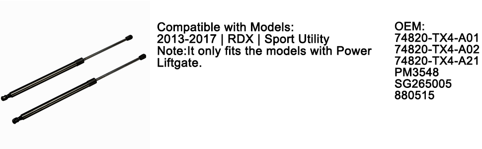 Rear Tailgate Lift Supports Gas Spring Shock Struts Compatible with RDX 2013 2014 2015 2016 2017 13 14 15 16 17 with Power Liftgate Sport Utility 2-PC Replace 74820-TX4-A01