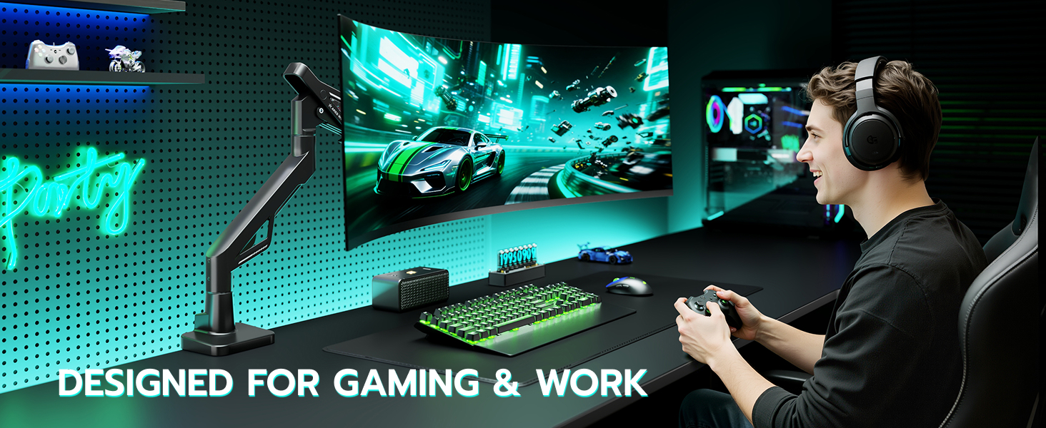 【Updated Design and Wide Compatibility】This ARES WING monitor arm is suitable for the largest 57-inch ultra-wide monitor and is backward compatible with 49-inch to 24-inch flat and curved monitors. This premium monitor mount boasts excellent load-bearing performance and can support monitors weighing up to 66 pounds. It also supports ultra-wide monitors like Samsung Odyssey G9 and LG that are compatible with VESA installation dimensions (75×75 mm, 100×100 mm, 100×200 mm, 200×200 mm). If your monitor does not have VESA mounting holes, you will need to prepare a VESA installation adapter.