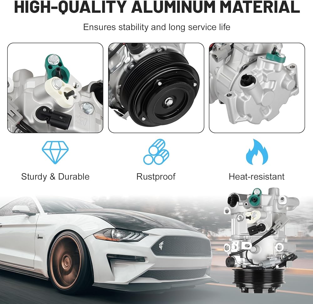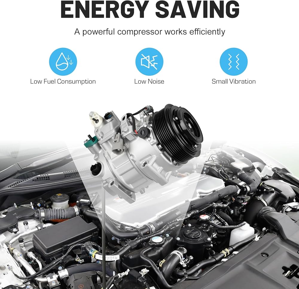 Energy Saving & Durable: This AC Air Conditioning Compressor kit provides efficient operation and great performance with low noise and minimal vibrations, ensuring a cool and comfortable ride. Built from high-strength aluminum alloy, it offers dependable performance, extended lifespan, and contributes to lower fuel consumption during steady driving