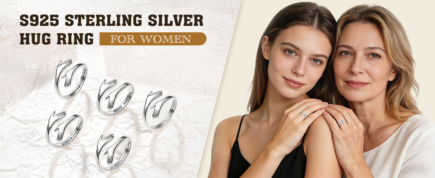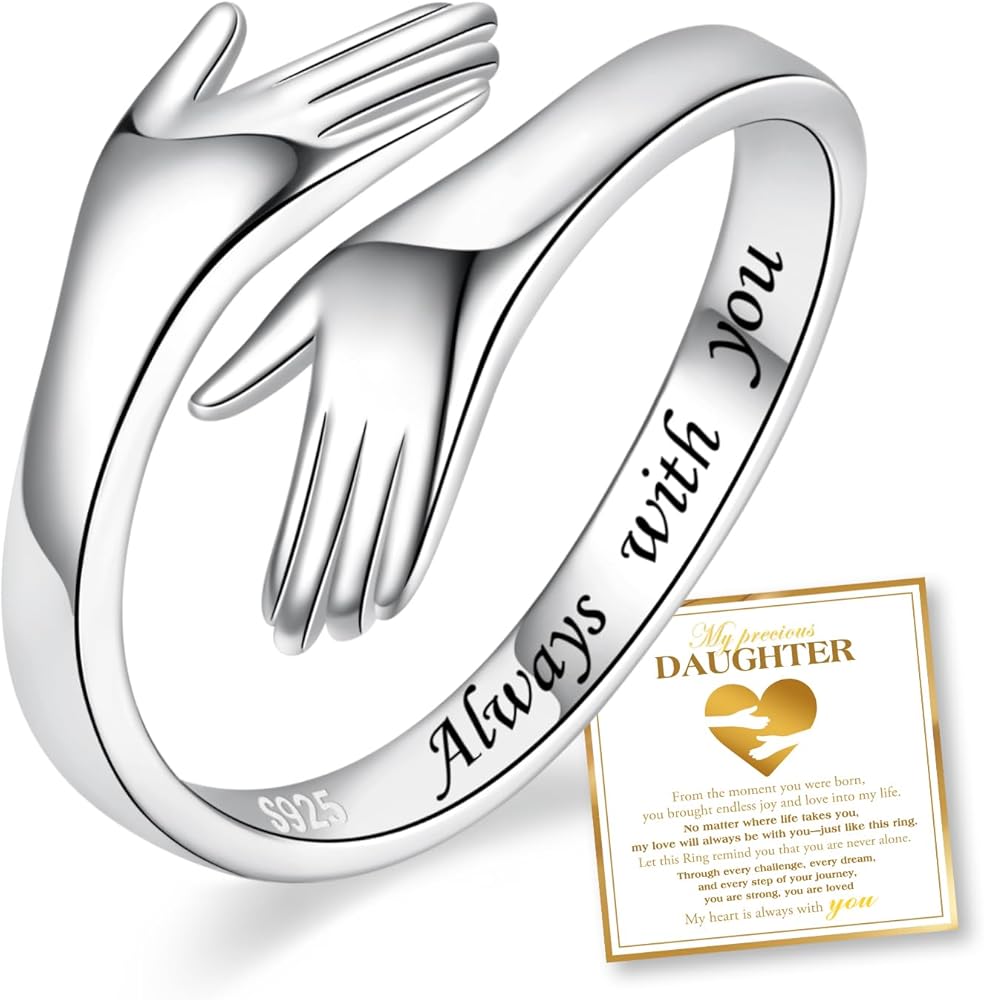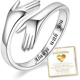 A thoughtful sterling silver hug ring for women, ideal as a gift for mom, daughter, wife, teens, or friend on birthdays, holidays, anniversaries, graduations, and special moments