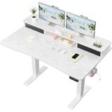 Veken 47.2"×27.6" Home Office Standing Desk with Monitor Riser, Adjustable Computer Desk with Drawers, Ergonomic Desk for Work, Study, Gaming, Crafting, White