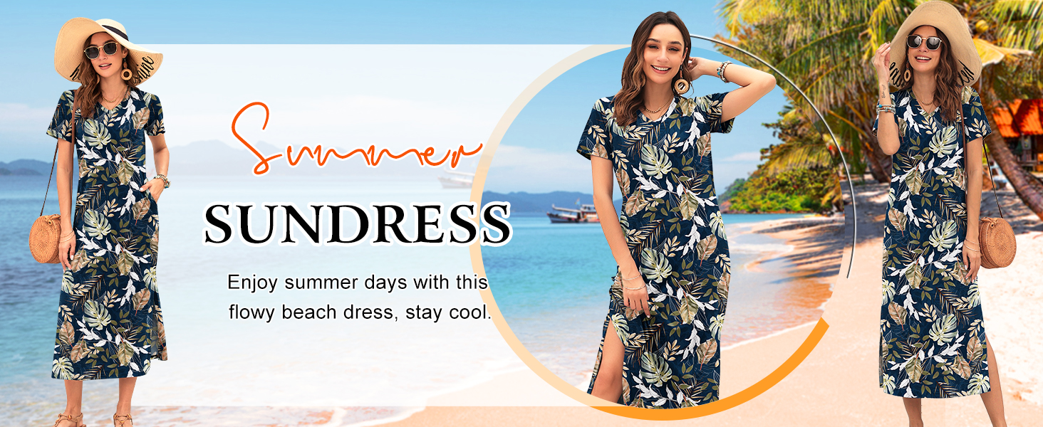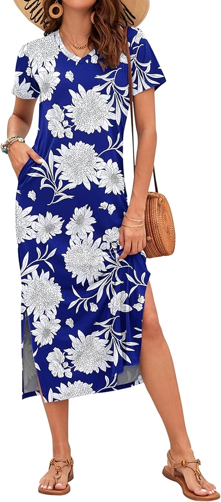 • 【Trendy Design】Short sleeve womens summer dresses with v-neck, side split t shirt dress, loose midi dress,summer beach dresses with two sides pockets. The maxi dresses for women can be also a comfy long dresses for women casual.Womens sundresses is perfect for a relaxed and practical look