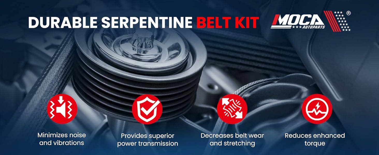 - Package Includes: 1 Serpentine Belt, 1 Belt Tensioner, 1 Idler Pulley